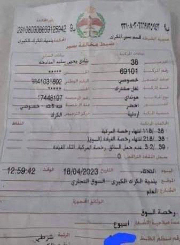 من جهته، أوضح الناطق الإعلامي باسم مديرية الأمن العام الأردني تفاصيل مخالفة المركبة التي أثيرت ضجة بشأنها عبر مواقع التواصل الاجتماعي ،وأكد أنّ سائق المركبة أوقفها بشكل مخالف ومعيق لحركة السير ورفض تحريكها بحجة أنّه يقوم بالتبضّع رغم الطلب منه لأكثر من مرة من قبل رقيب السير.