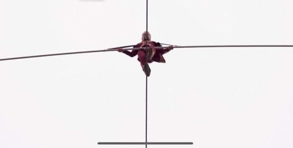 وأظهر المقطع الذي انتشر بشكل واسع فنان السيرك لازلو سيميت وهو يمشي لمسافة 280 مترًا على ارتفاع 30 مترًا وعلى حبل مشدود بسمك 22 ملم .