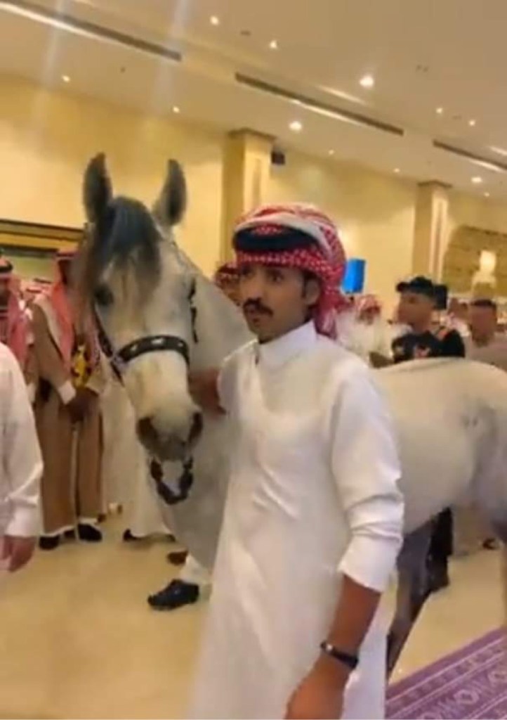 وثق مقطع فيديو متداول، قيام أحد الشباب في السعودية بتقديم حصانه لصديقه في يوم الزفاف، حيث قام باصطحاب الحصان إلى قاعة الزفاف وسط أجواء الفرحة بالزواج، وهو الأمر الذي أصاب البعض بالسخرية والصدمة في آن واحد بسبب ما فعله.