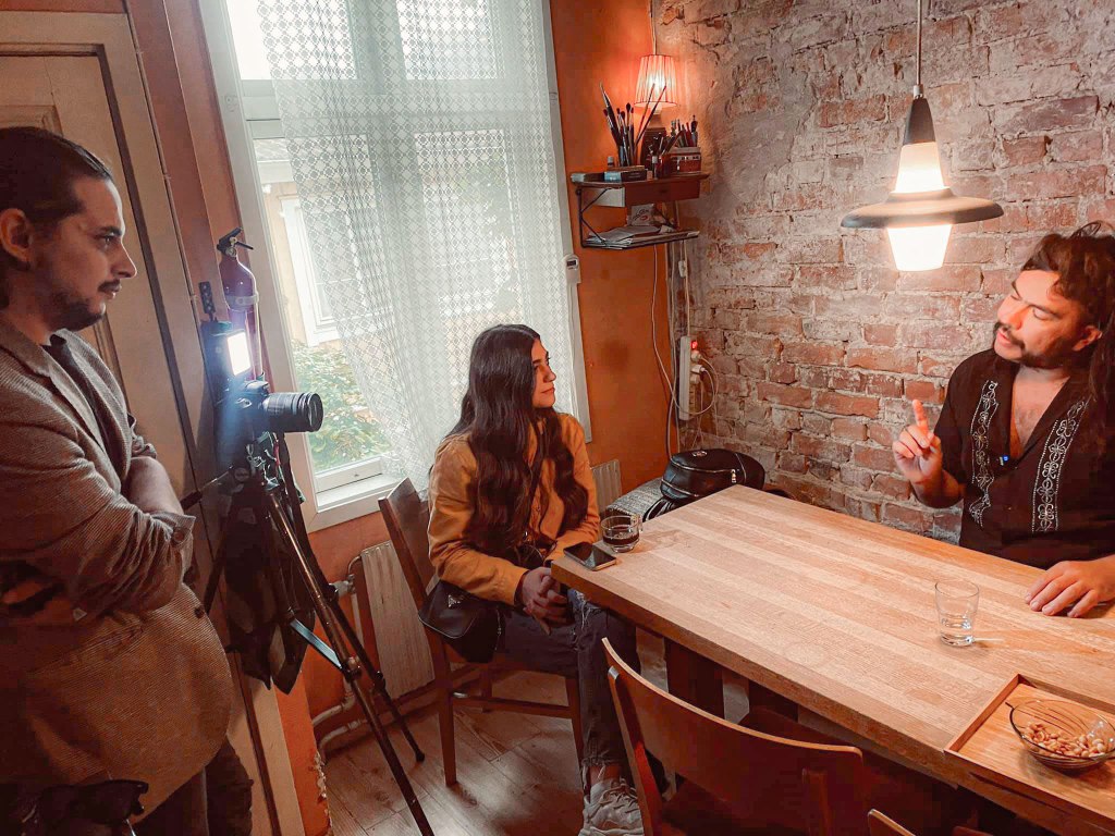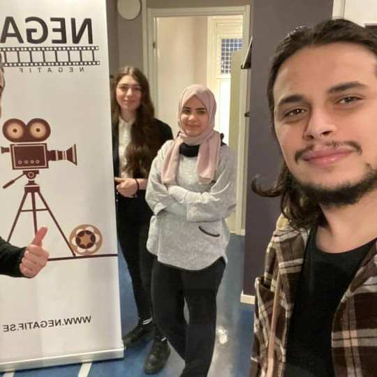 14 April 2022 besökte oss i negatif studion, David Bäck Fadia Alsoukhni , Gushu , och Oliver Maté , mycket kreativitet idéer på bordet, Negatif FILM Folkets Hus UddevallaStudiefrämjandet Fyrbodal